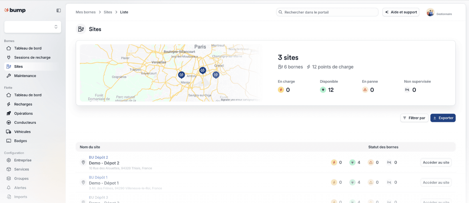 Toute l'activité de vos stations pilotée depuis la plateforme de gestion Bump.